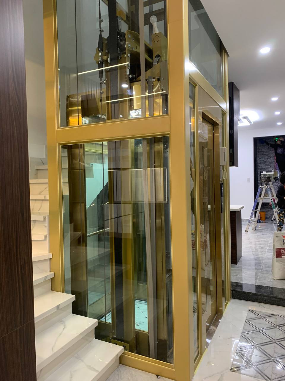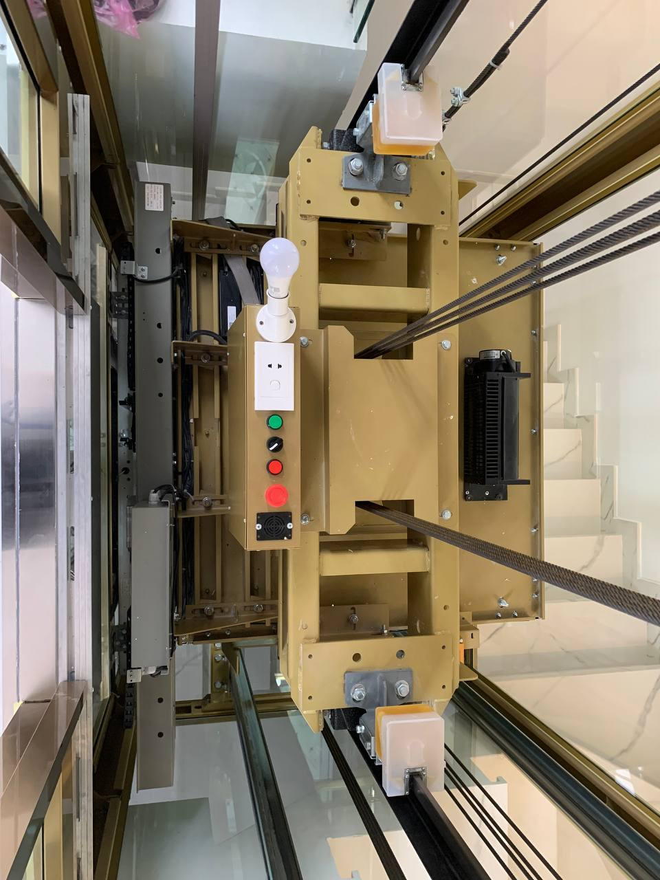 Thang máy kính khung sơn vàng luôn là sự lựa chọn tuyệt vời cho những công trình nhà phố và biệt thự sang trọng. Thang máy kiểu này rất nhiều khách hàng ưa chuộng, và tôi nhận thấy rằng không chỉ về mặt thẩm mỹ mà còn về tính tiện dụng, thang máy kính mang lại sự thoải mái, dễ chịu cho người sử dụng.