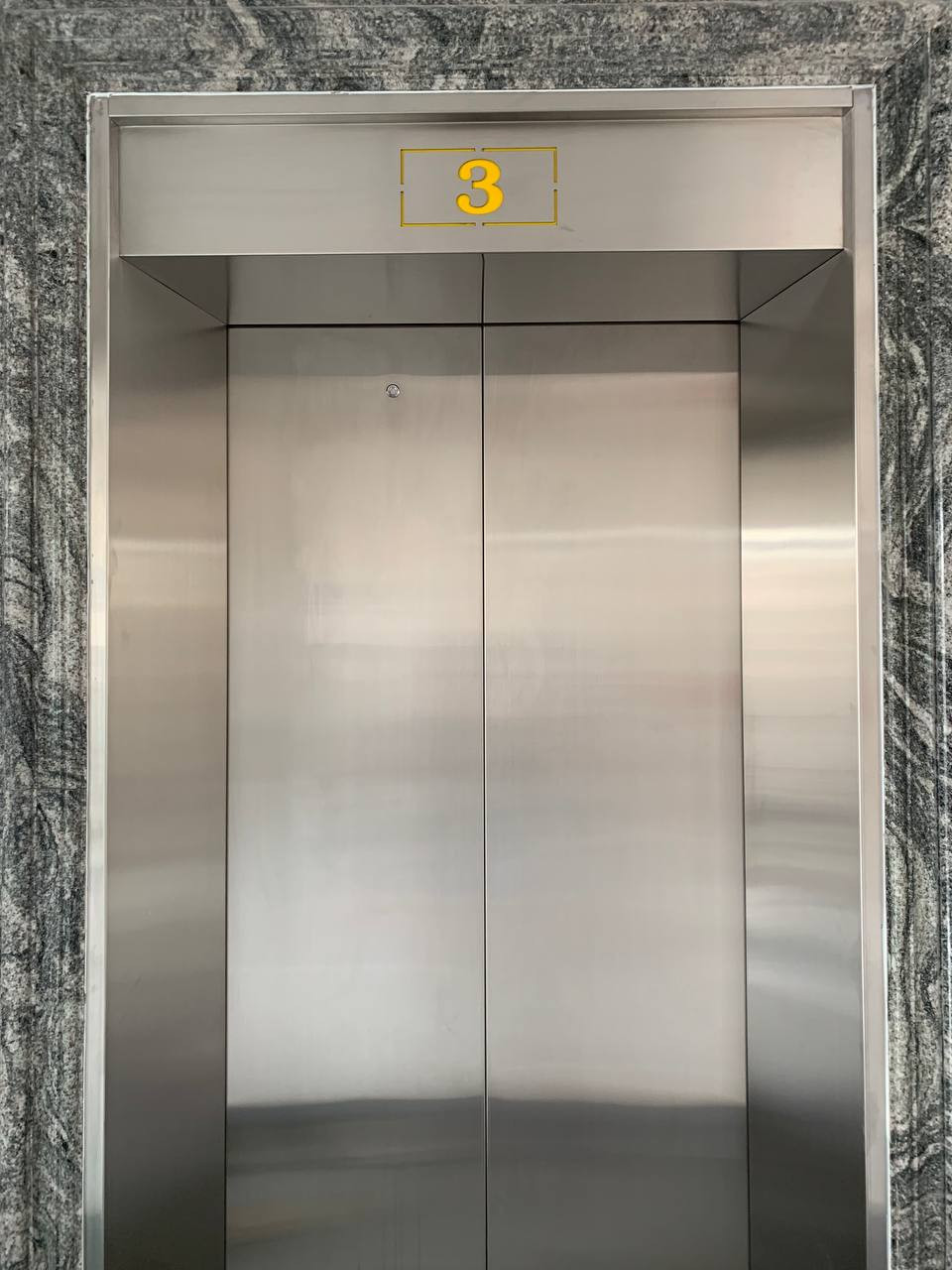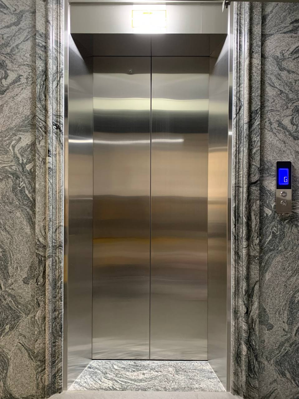 Mẫu thang máy hay bắt gặp ở shophouse hoặc văn phòng công ty đa phần là inox giả gỗ chèn inox gương. Mẫu cabin loại này tạo cảm giác ấm, cảm giác vững và giản dị, phù hợp với nội thất gỗ cao cấp. Đi kèm là khuôn bao cửa tầng rộng inox sọc chắc chắn.