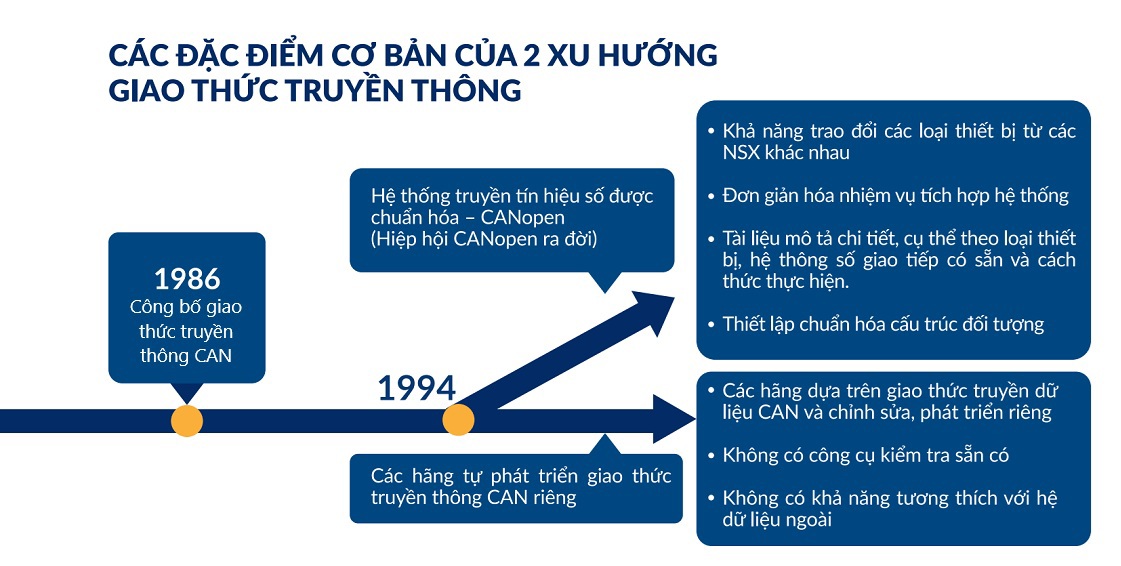 Để giải quyết tình trạng "ngăn sông cấm chợ" này, tổ chức CiA (CAN in Automation) đã được thành lập vào năm 1992. Đến năm 1994, giao thức CANopen chính thức ra đời, chuẩn hóa tầng ứng dụng thông qua khái niệm "Từ điển đối tượng" (Object Dictionary), tạo nền tảng cho sự tương thích tuyệt đối giữa các thiết bị.