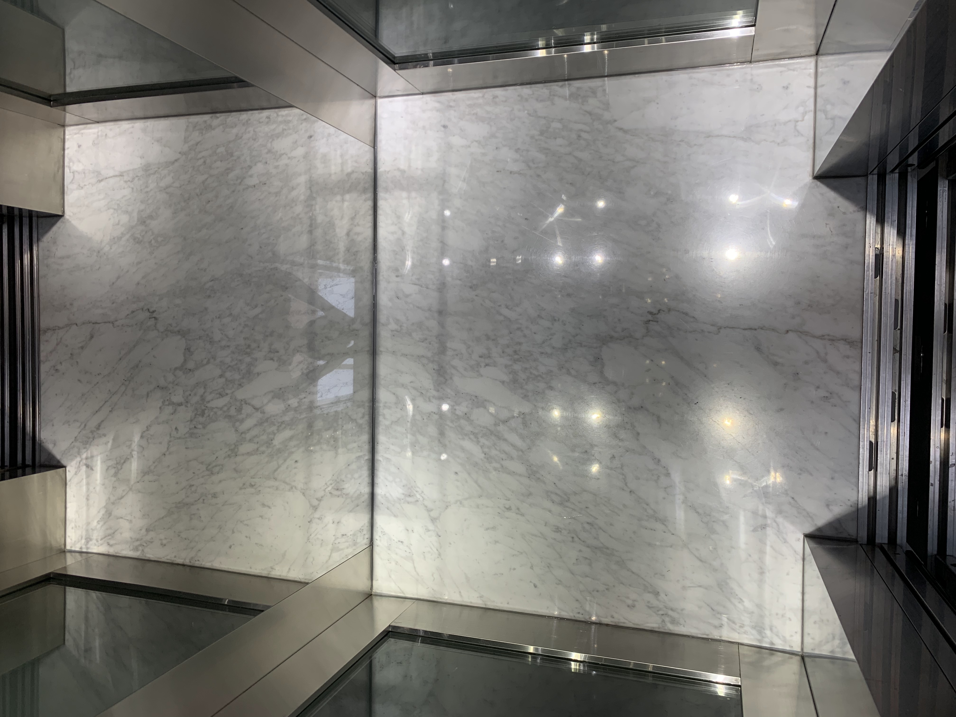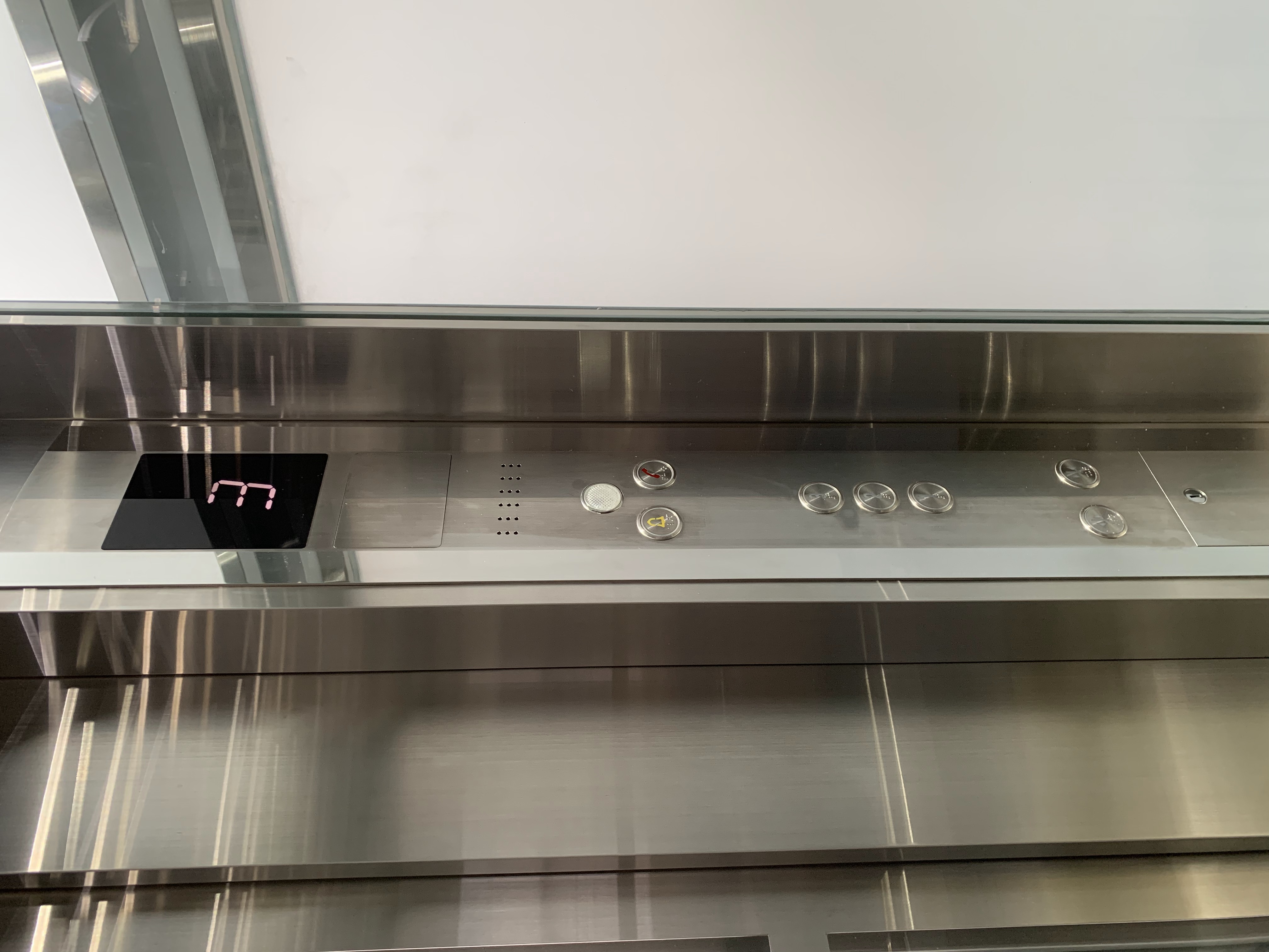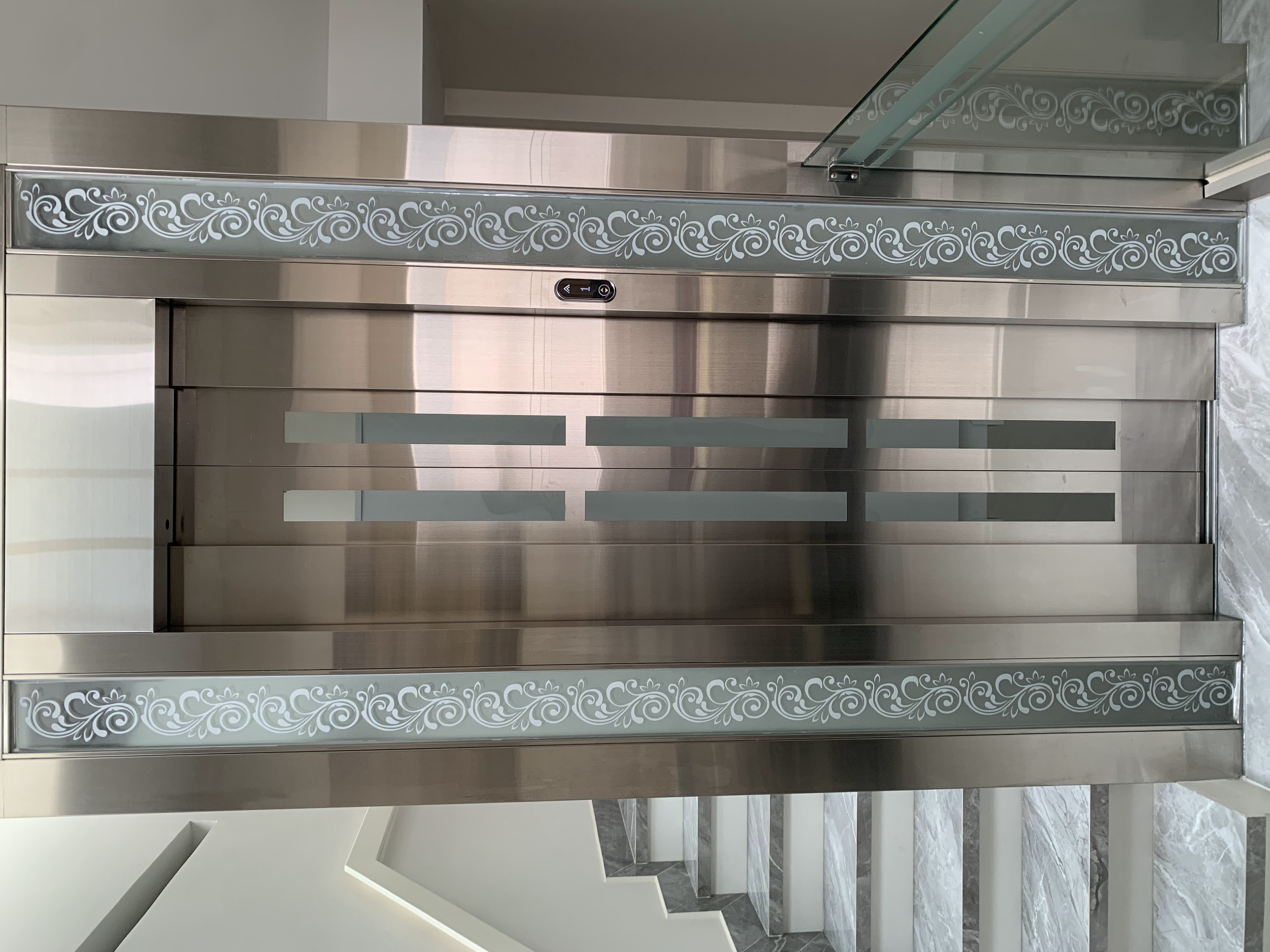 Sự tỉ mỉ thể hiện rõ nét ở việc kết hợp các tấm kính mờ. Thay vì để kính trong suốt phô diễn mọi chi tiết bên trong, kính mờ giúp tán xạ ánh sáng một cách êm dịu, vừa đảm bảo sự riêng tư, vừa giữ cho khối kiến trúc 3 tầng của thang máy trở nên thanh thoát, không bị nặng nề bởi cảm giác kim loại.